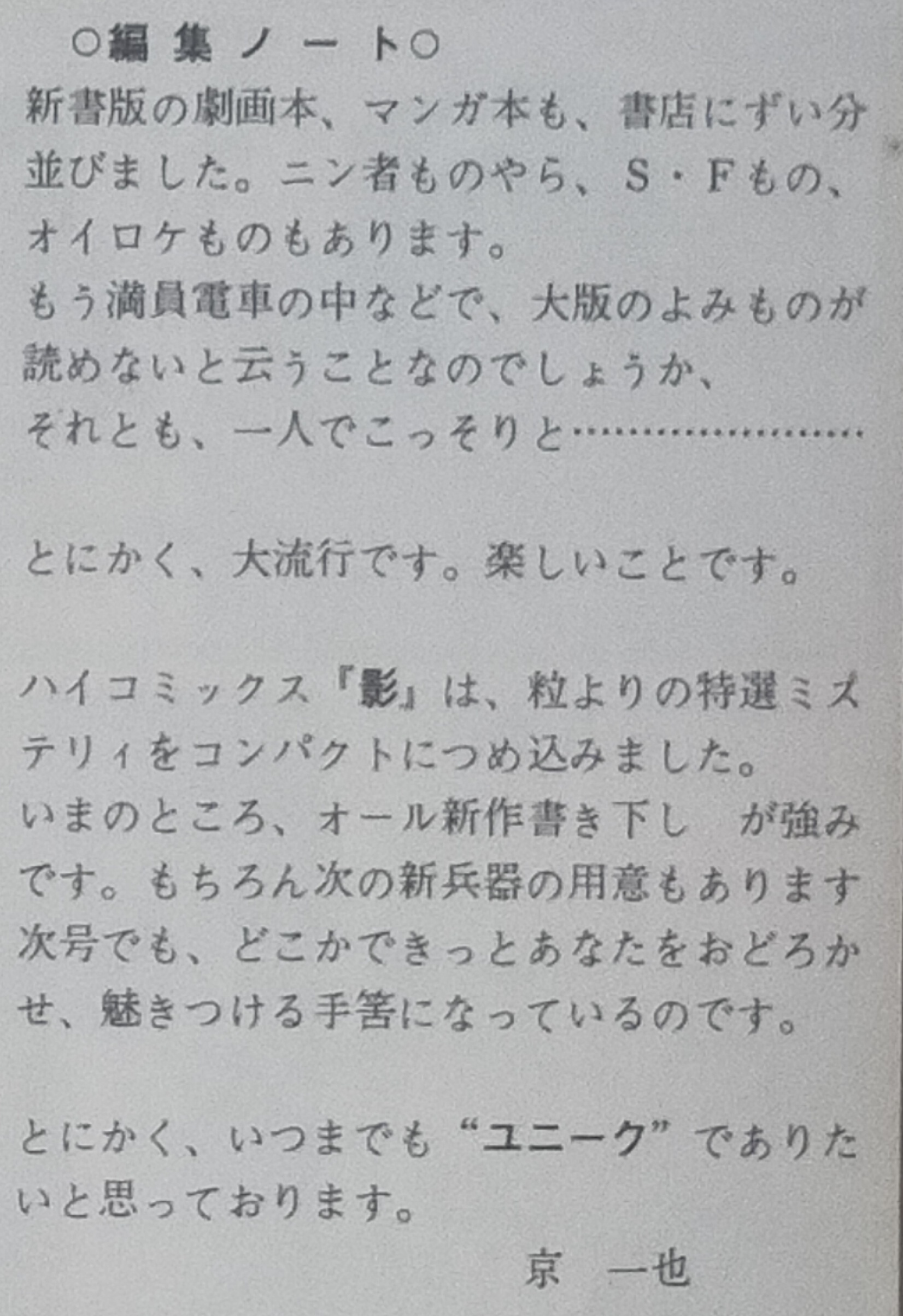 ほんの少しではあるが、石川フミヤスの貸本マンガ時代の作品を読んだが、創作にかける誠実な思いが伝わってくる作品が少なくない。商業的な成功とはまた、別問題なのであるが、商品としてのクオリティを長期間持続させることの難しさを思い知らされます。